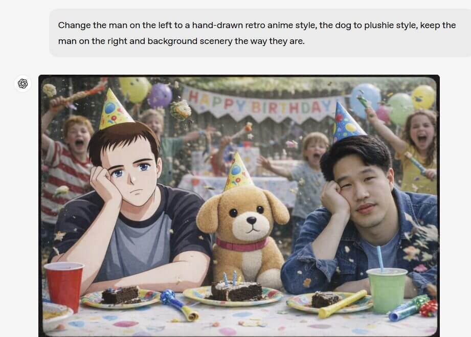 ChatGPT Images excelle dans l'ajout, la suppression, la fusion et la combinaison d'éléments. Celles-ci s’accompagnent de transformations créatives plus complexes, capables d’introduire différents textes, mises en page et styles visuels, tout en conservant une cohérence globale. Le résultat est un outil qui aspire à fonctionner comme un studio de création de poche.
