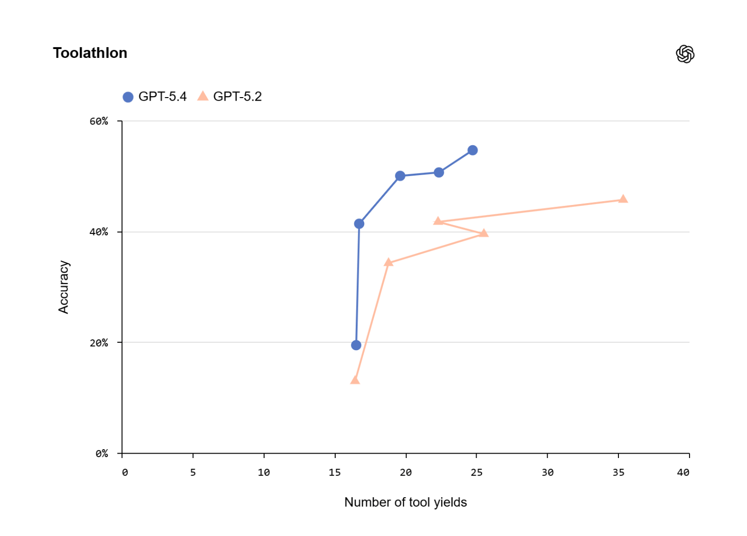 Les performances augmentent également dans la navigation du navigateur, à la fois sur WebArena-Verified et Online-Mind2Web. Mais la donnée intéressante ne se limite pas au pourcentage final. OpenAI accorde une grande importance au concept de rendement de l'outilc'est-à-dire sur le nombre de suspensions nécessaires pour attendre les instruments. Il s'agit d'un indicateur moins spectaculaire mais plus proche de la productivité réelle, car il capture la latence réelle des workflows multi-étapes et la capacité du modèle à paralléliser ou compresser les opérations.