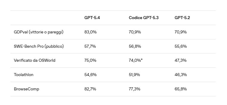 Dans le lexique OpenAI, GPT-5.4 est né comme le modèle le plus performant et le plus efficace pour le travail des connaissances. Le choix du nom signale également une stratégie de simplification. Au lieu de maintenir une séparation claire entre le modèle de raisonnement et le modèle de codage, l'entreprise intègre les capacités de GPT-5.3-Codex au cœur du nouveau système et les combine avec un profil plus fort dans l'utilisation d'outils et de flux de travail d'agent. En termes industriels, cela signifie réduire le nombre d’étapes nécessaires pour réaliser une tâche complexe et, surtout, réduire les frictions entre l’analyse, l’exécution et la vérification.