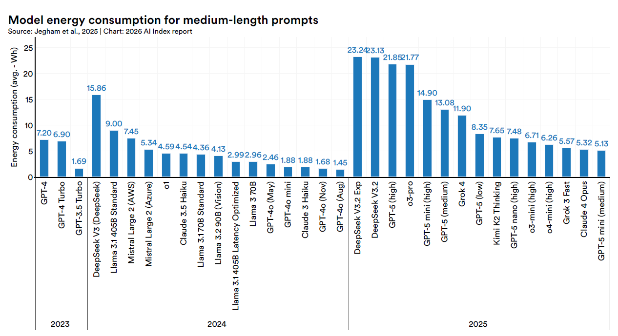 Sur le plan de la transparence, les données de l’IA Index montrent un renversement de direction qui n’a pas encore été suffisamment discuté. En 2025, sur 95 modèles notable80 ont été publiés sans le code de formation correspondant, contre 4 qui ont publié le code complet en open source. En 2020, les deux catégories étaient presque équivalentes, aujourd’hui le rapport est de 20 pour 1. Le modèle d’accès dominant est devenu l’API, qui en 2025 a collecté 45 des 95 versions.