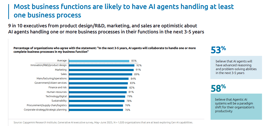 L'évolution conduit à des systèmes multi-agents: 45% des entreprises qui grimpent déjà des agents en les testant. Siemens a développé un orchestrateur capable de coordonner ses propres agents de tiers, fonctionnant comme un « artisan numérique ».
